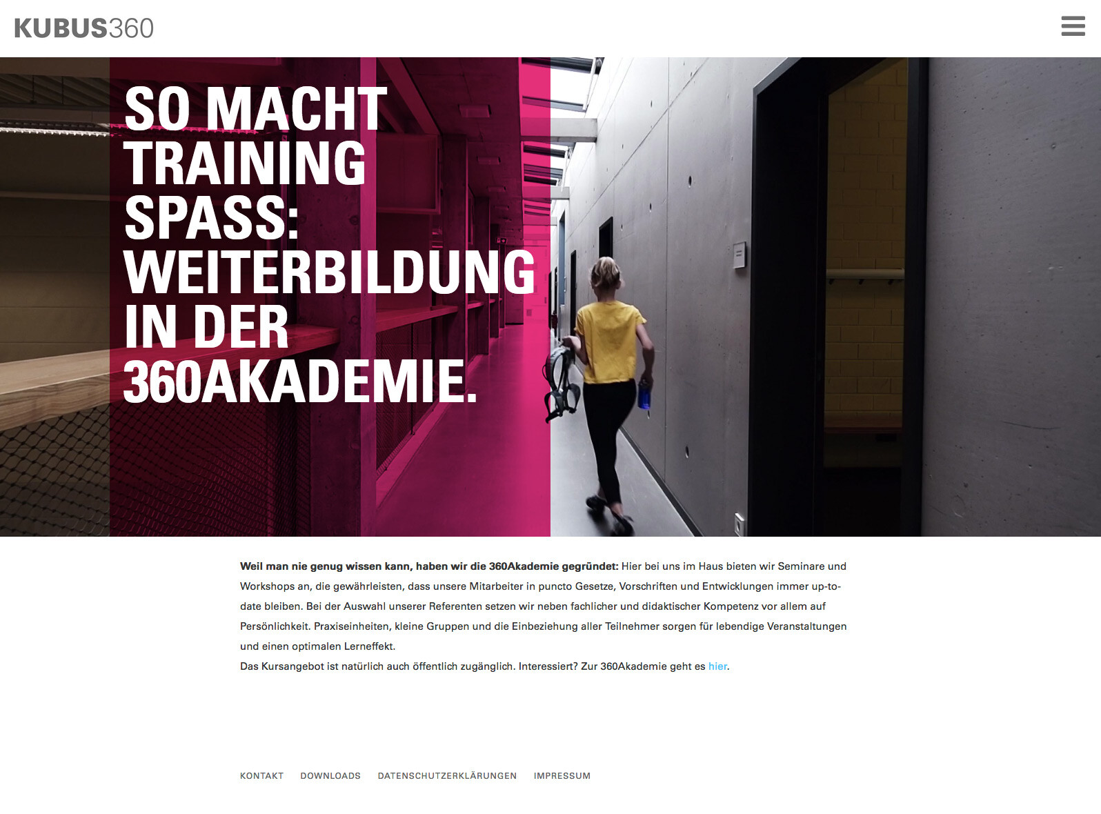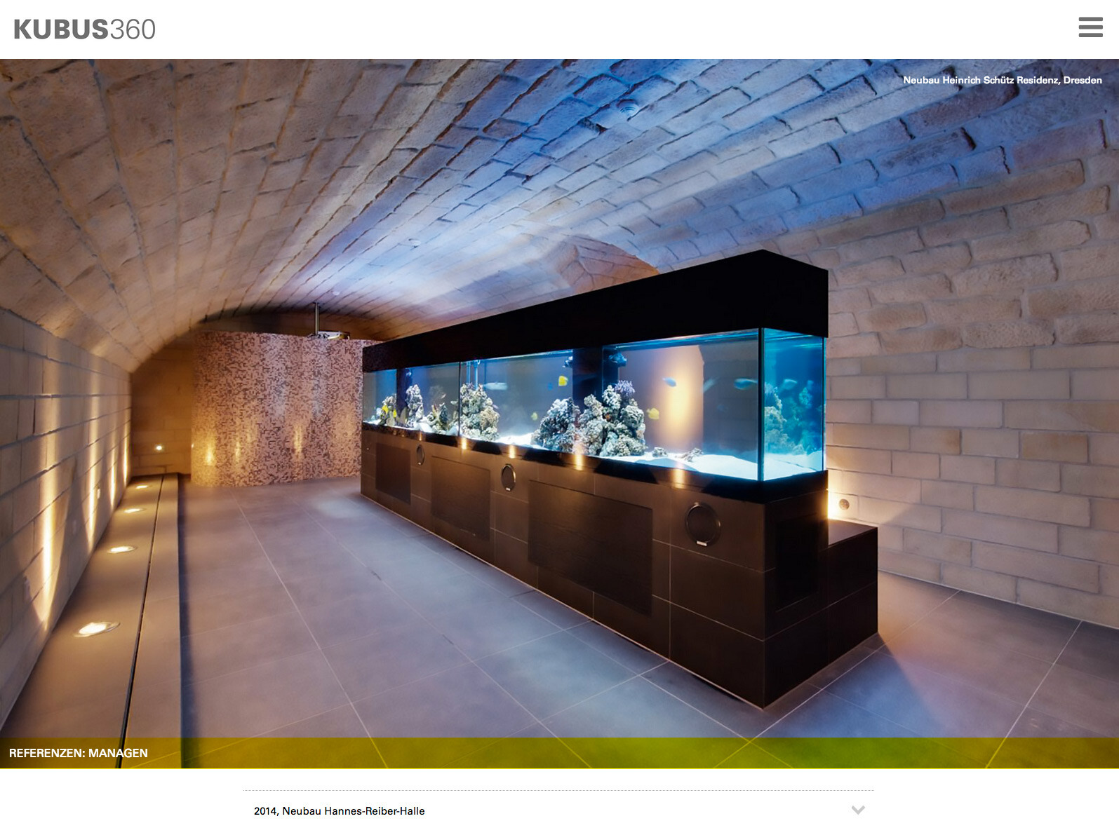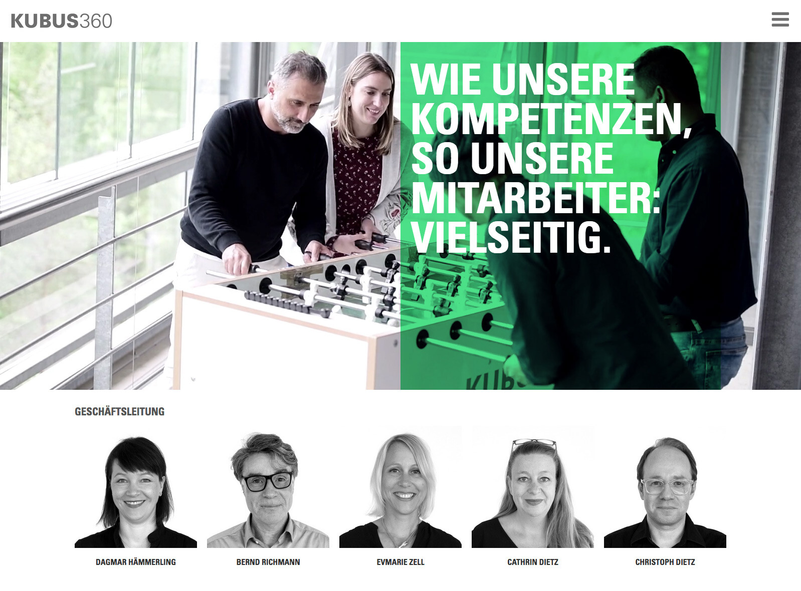 Jede Kategorie wird mit einem kurzen Clip aus dem Alltag von kubus360 eingeleitet. Die Referenzen geben einen bildschirmfüllenden Überblick über die Leistungen und angebotenen Disziplinen.