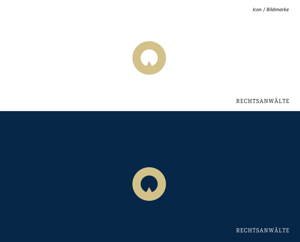 Webauftritt und Corporate Design setzen auf die Grundfarben Royal Blau, Weiß und Gold. Klare Botschaften und Statements leiten in illustrierten Headergrafiken die einzelnen Rechtsgebiete ein.