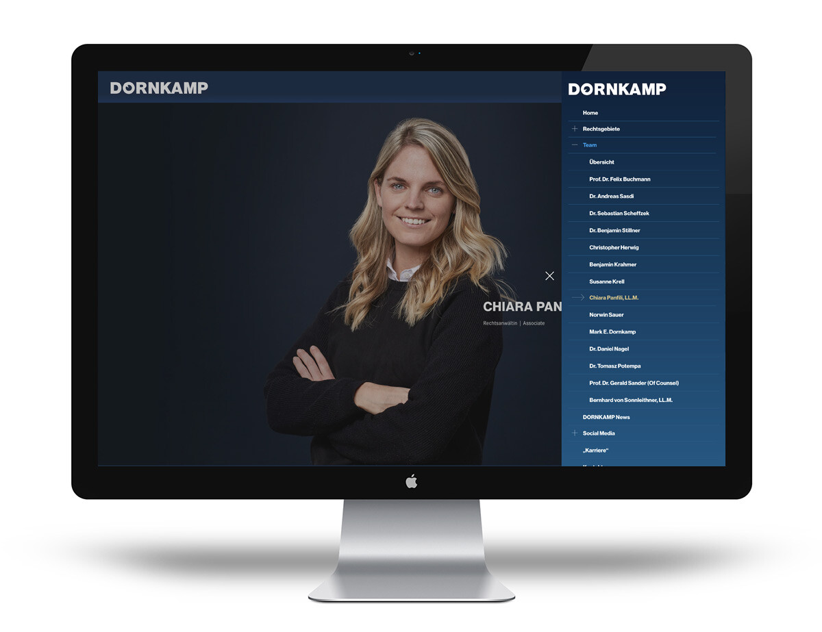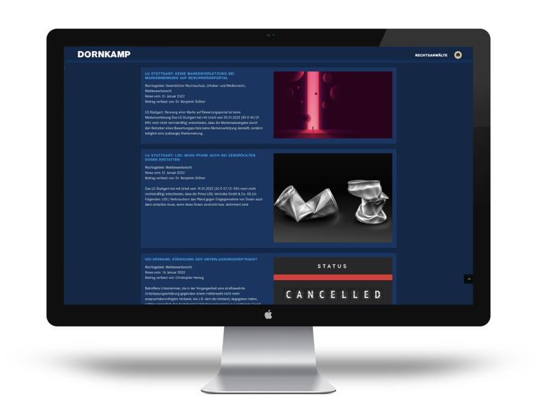 Für die Stuttgarter Anwaltskanzlei »Dornkamp Rechtsanwälte« konzipiert und gestaltet MVONH den Marken- und Webauftritt.