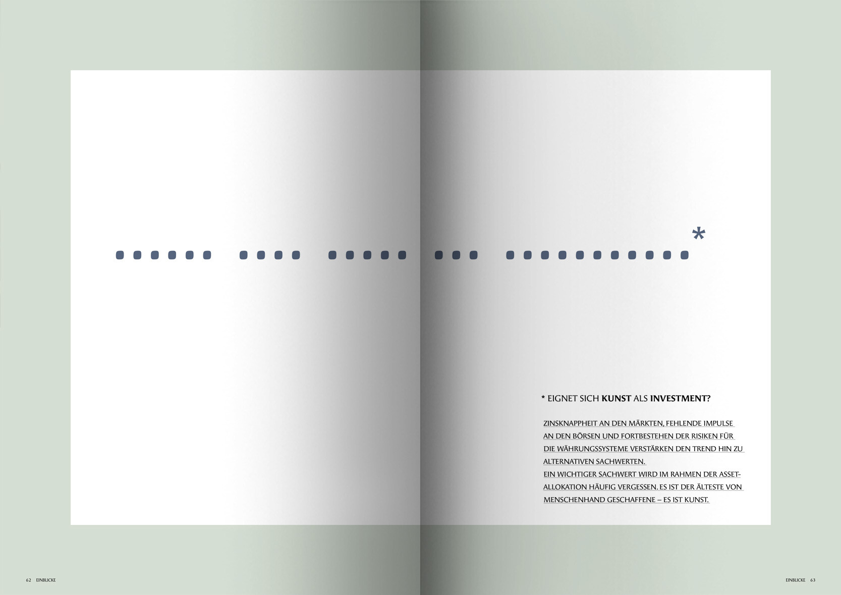 Einblicke ist das neue Magazin für Investment, Finanzen und Sachwerte. Bei den Themen rund um Finanzmärkte und Anlagemöglichkeiten stehen weniger Volumen, sondern erlebbare Werte im Vordergrund.