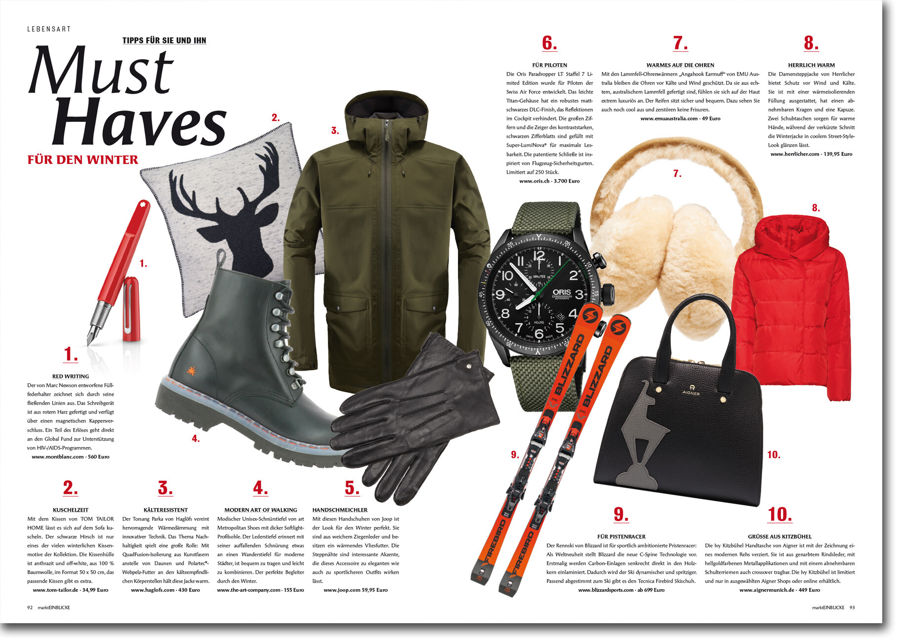 Als perfekten Kontrast du den Wirtschaftsthemen umfasst die Rubrik Lebensart Berichte über Genuss, Reisen, Essen und Trinken, Design, Fashion und Beauty, Kunst und Kultur sowie weiteren Lifestyle.