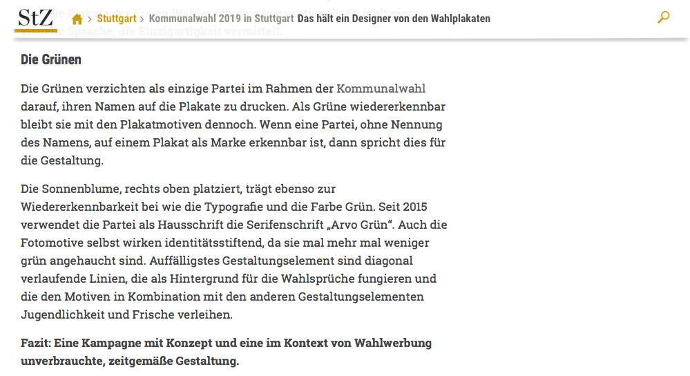 »Eine Kampagne mit Konzept und eine im Kontext von Wahlwerbung unverbrauchte, zeitgemäße Gestaltung.« ** Zum Artikel