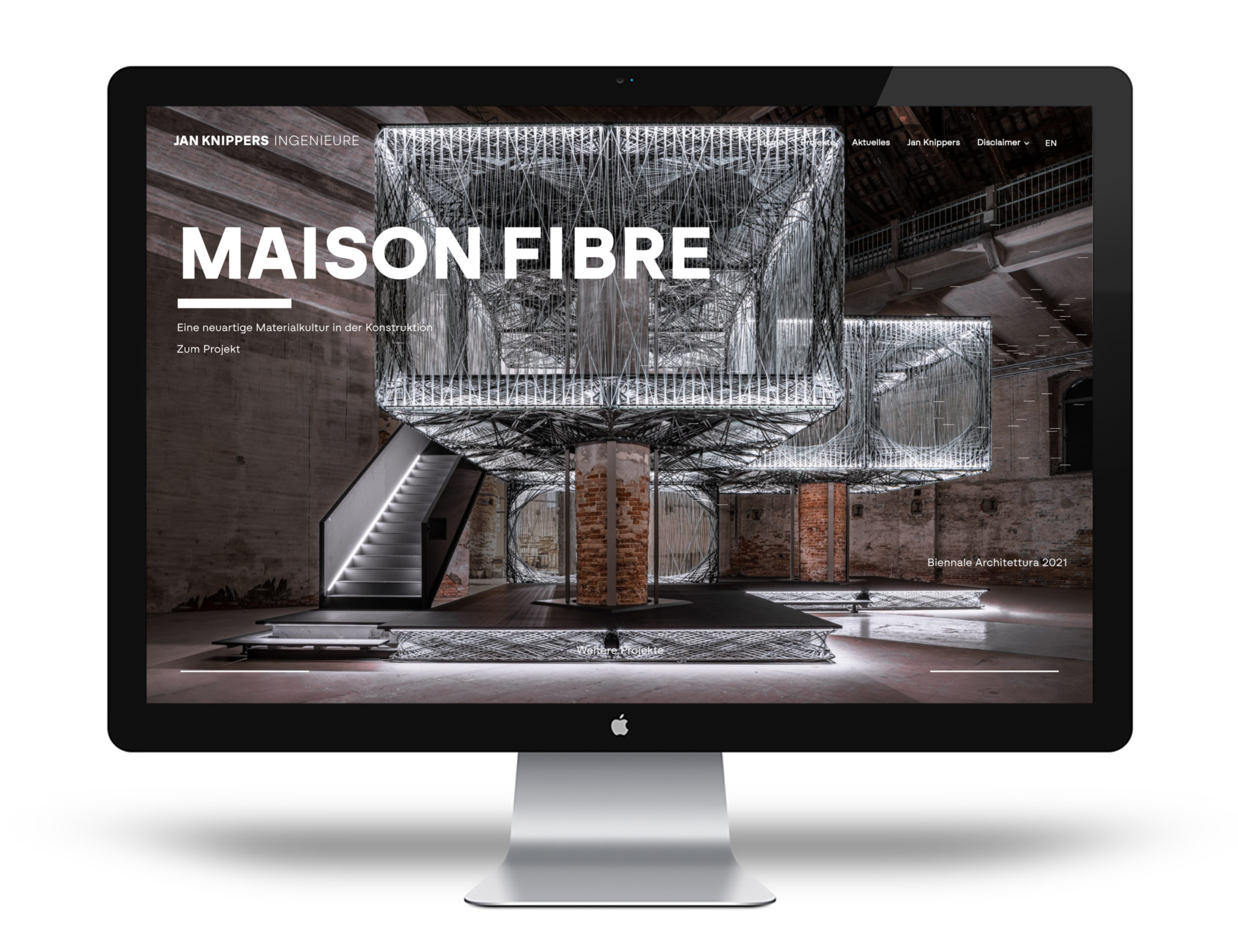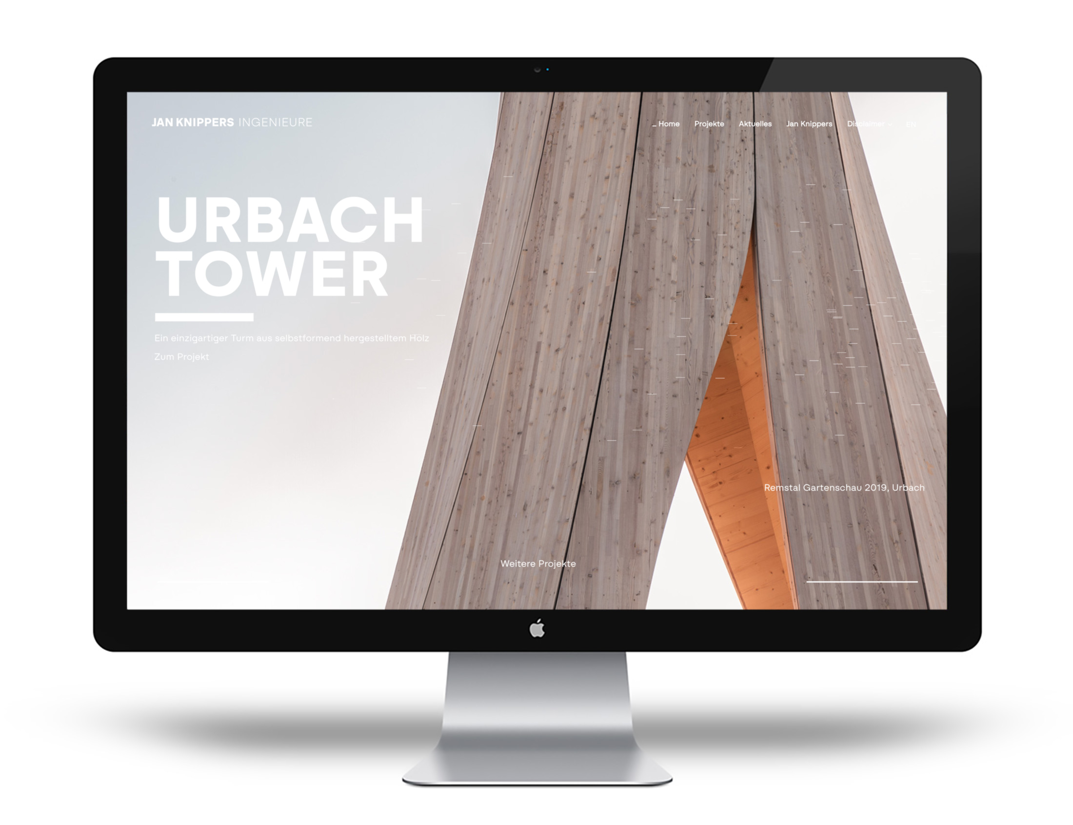 Die Seite spielt mit einzelnen, filmischen – und zufällig geladenen – Fragmenten aus den Projekten und bildet somit eine Bewegtbild-Collage aus dem Schaffen von Jan Knippers. Die Clips werden durch eine organisch anmutende, illustrative Cluster-Bildung aus feinen Strich-Elementen quasi zusammengehalten. Sie stehen dabei sinnbildlich für die organischen, wachsenden und oft aus der Natur inspirierten Formen, aus denen viele Projekte von Jan Knippers ihre Inspiration ziehen.