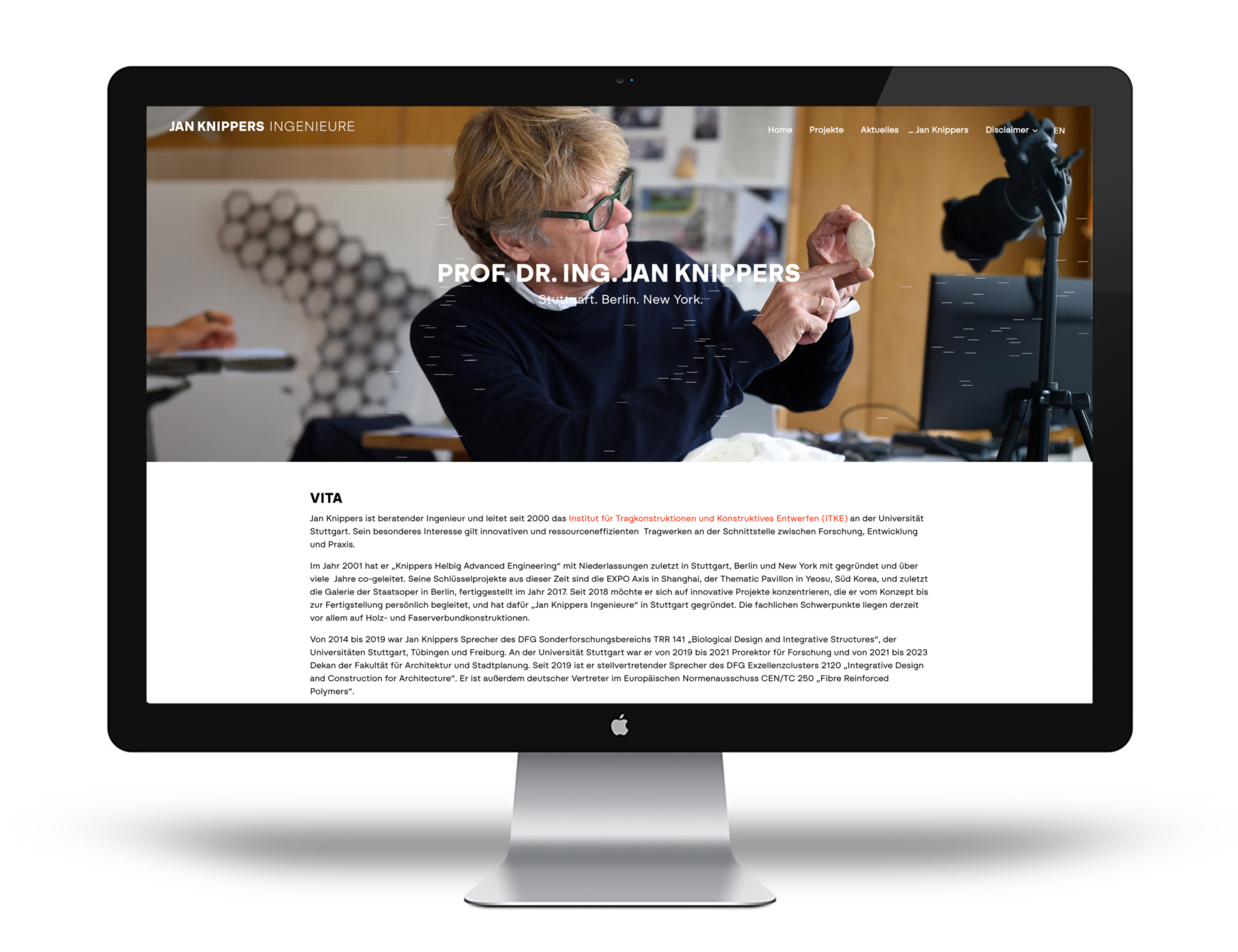 Neue Website für Prof. Dr. Ing. Jan Knippers (Universität Stuttgart).