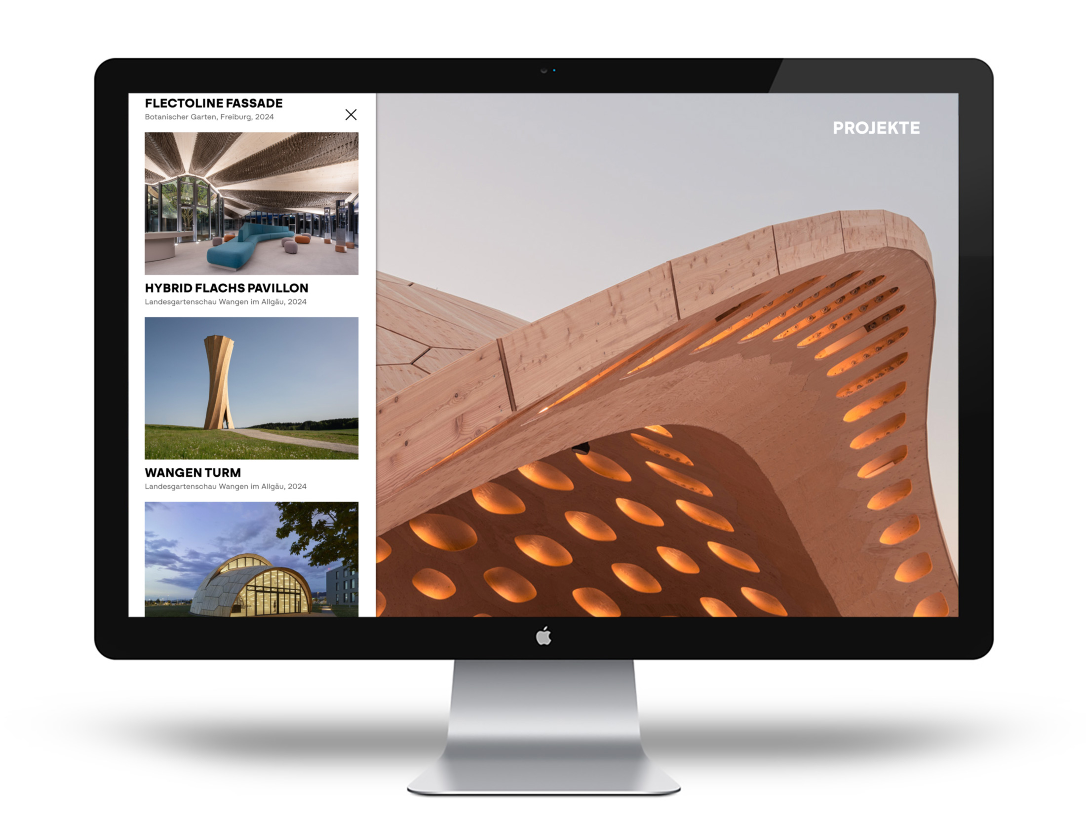 Der neue Webauftritt stellt eine klassische »portfolio page« dar, die einen chronologischen Überblick über die Projekte in Berlin, Stuttgart, Venedig, Shanghai, Yeosu (Süd Korea) und vielen weiteren Stationen aus den letzten 20 Jahren bietet. Durch die fotografisch und filmisch bis ins Detail dokumentierten Projektphasen bekommt der Besucher einen tiefen Einblick in die Hintergründe und Entstehungsphasen der Projekte. Von den ersten Entwürfen, über Computer-Simulationen, bis hin zum Bau und zur Realisierung auf dem Gelände bieten viele Projekte eine umfangreiche Beschreibung hinter der Idee und dem finalen Projekt.
