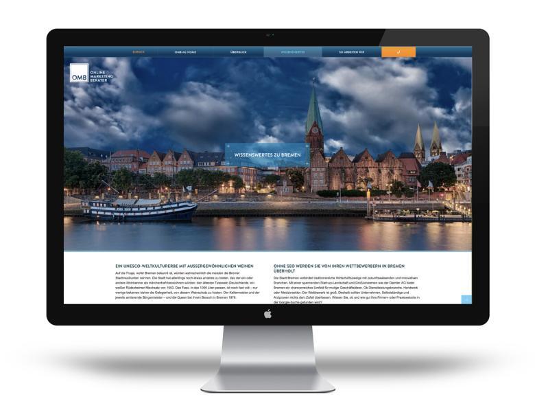 Zusätzlich bietet der »Online. Marketing. Berater« (OMB AG) auch ortsbezogene Microsites für Berlin, Stuttgart, Bremen, Zürich uvm. an – für zielgerichtete Suchmaschinenoptimierung, zugeschnitten auf die jeweilige Stadt.