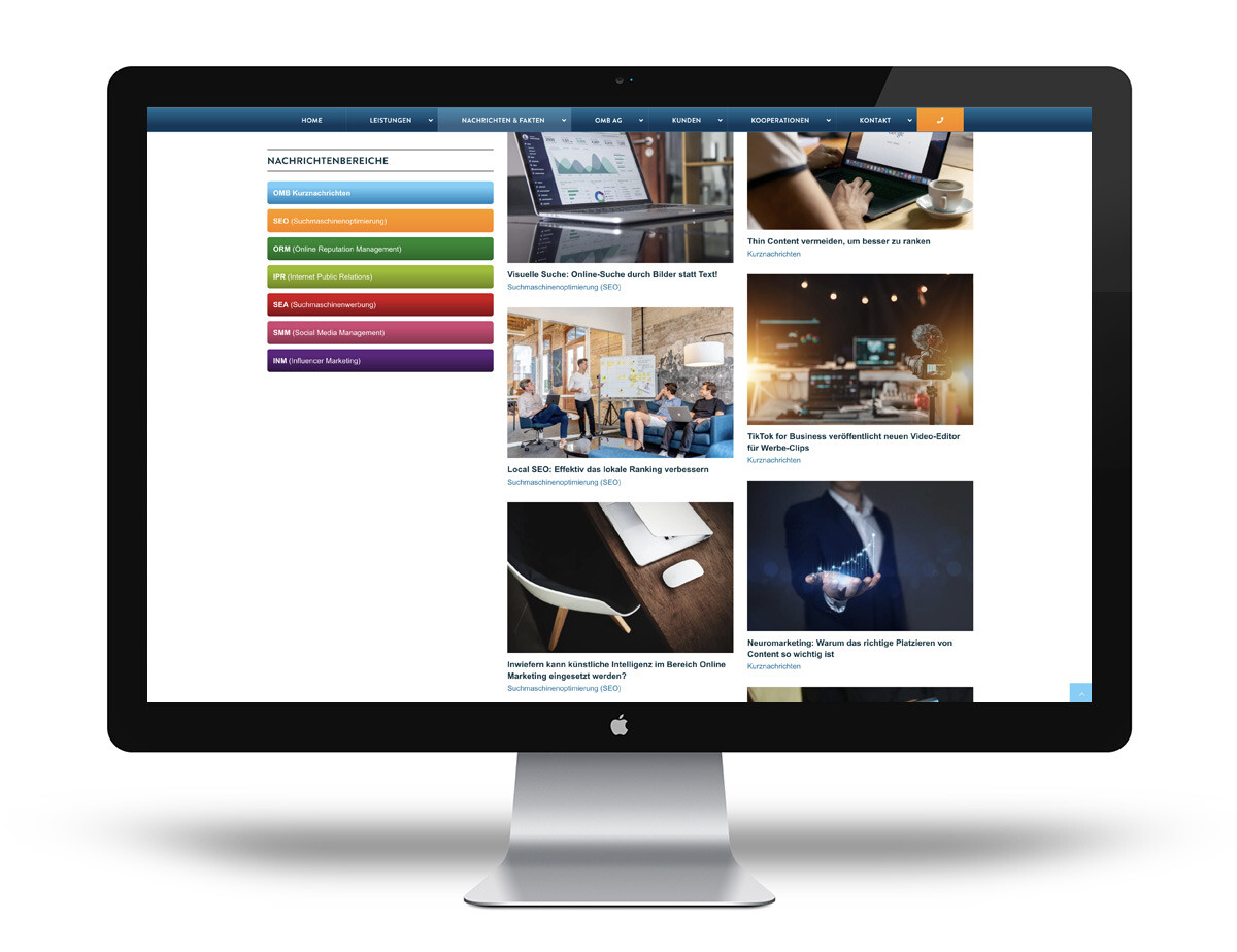 In einem OMB-Nachrichten-Portal bietet das Unternehmen seinen Kunden viele nützliche Tipps und wissenswerte Fakten zu SEO & Co.