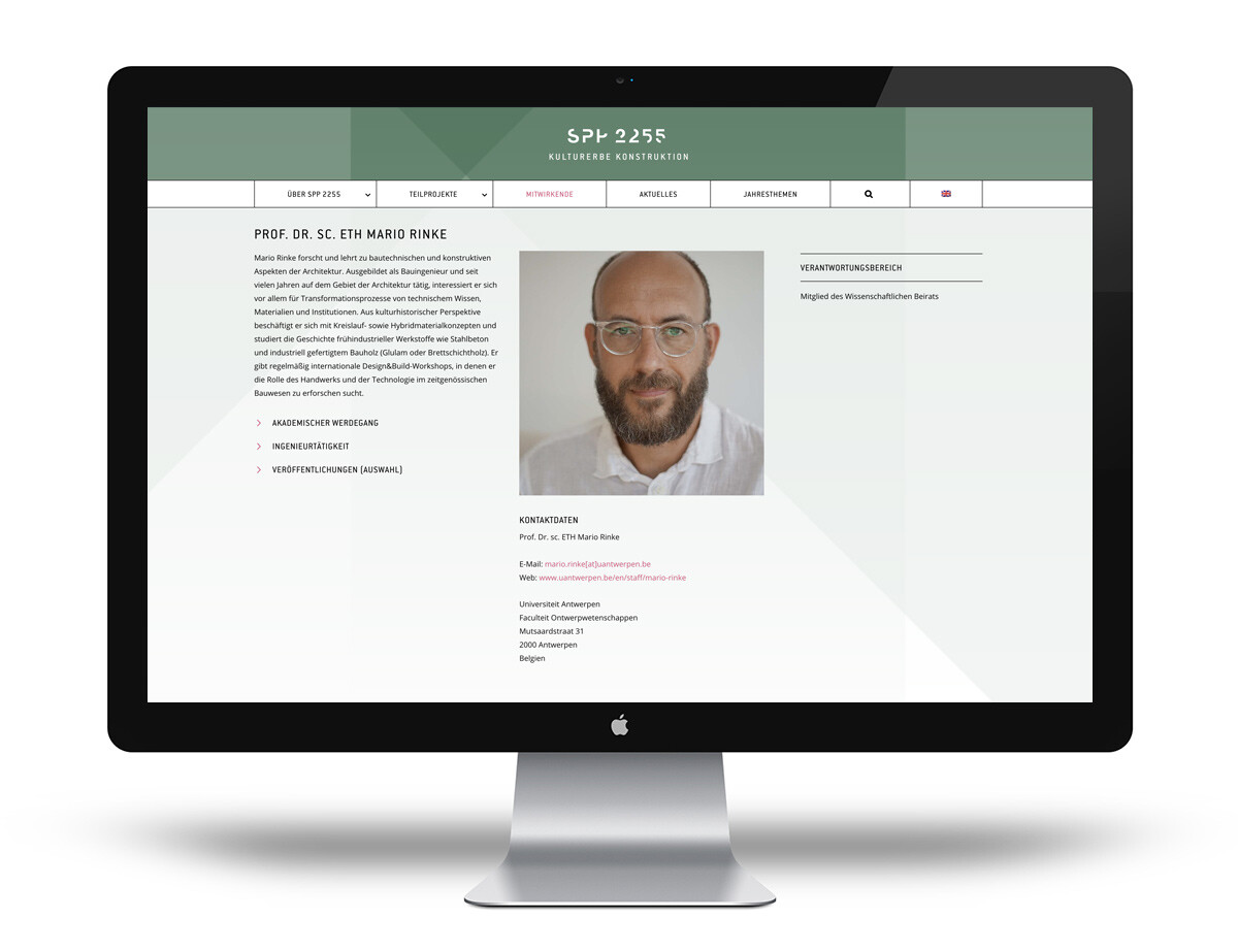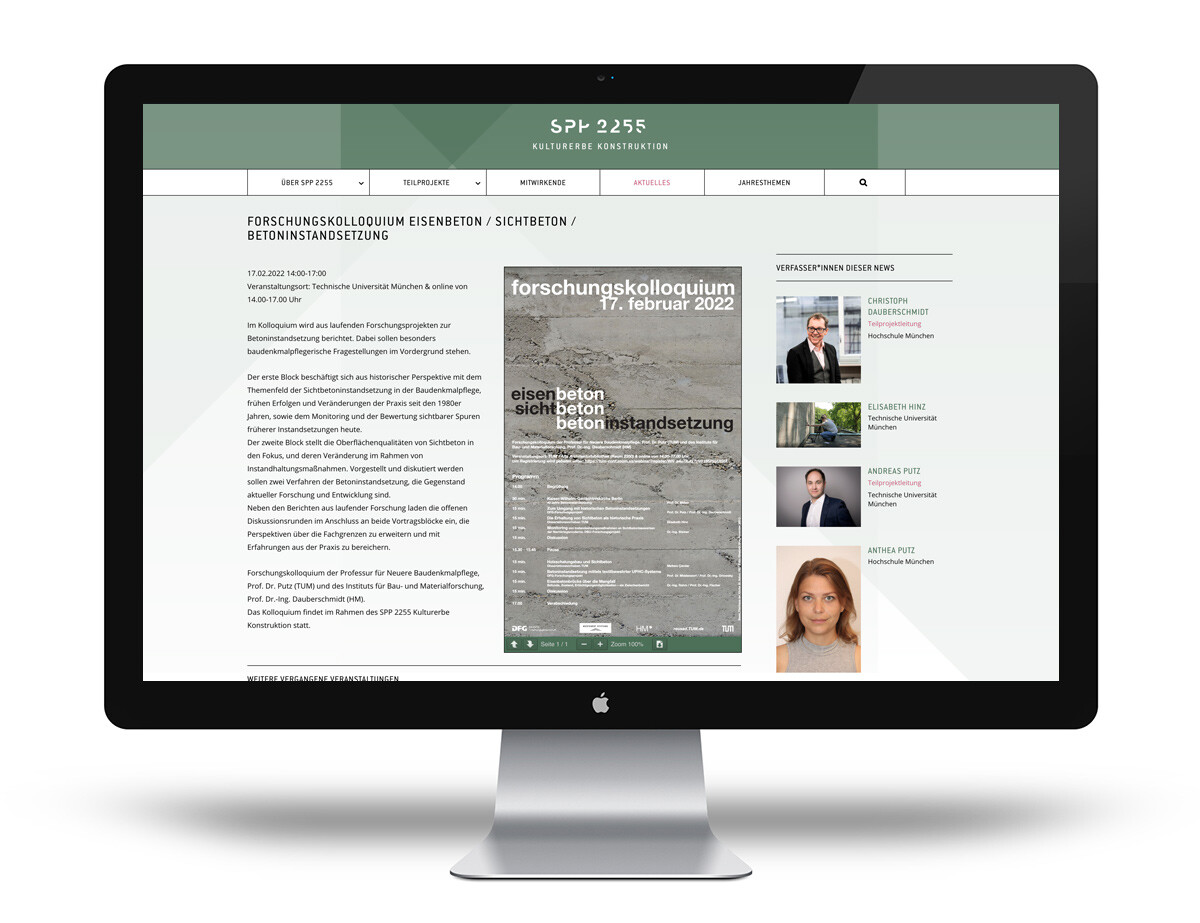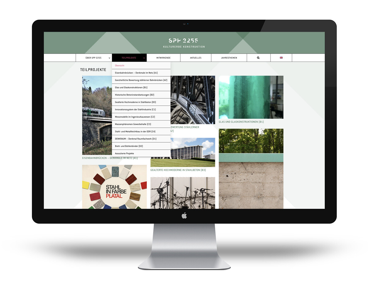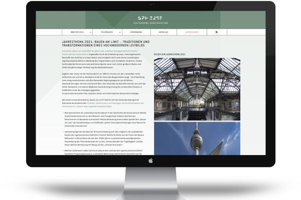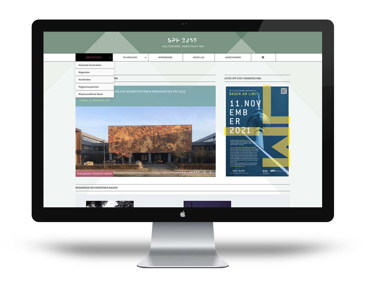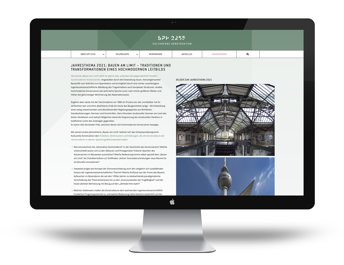 Begleitend zur Entwicklung des Logos und des Corporate Designs für das von der Deutschen Forschungsgemeinschaft (DFG) geförderte und von der Brandenburgischen Technischen Universität Cottbus-Senftenberg kuratierte Schwerpunktprogramm »SPP 2255 Kulturerbe Konstruktion« entwickelt MVONH den Webauftritt.