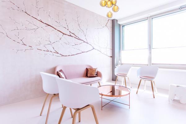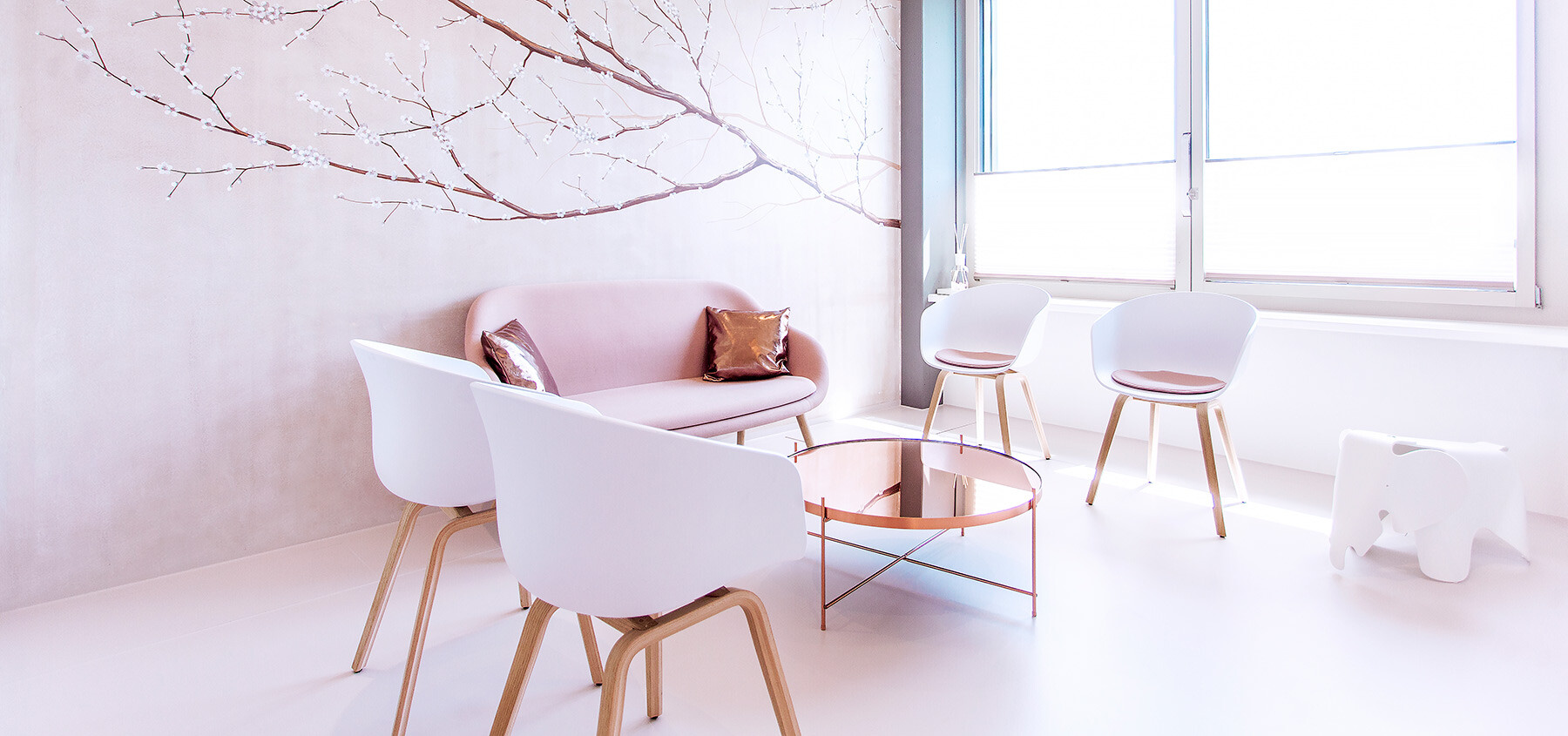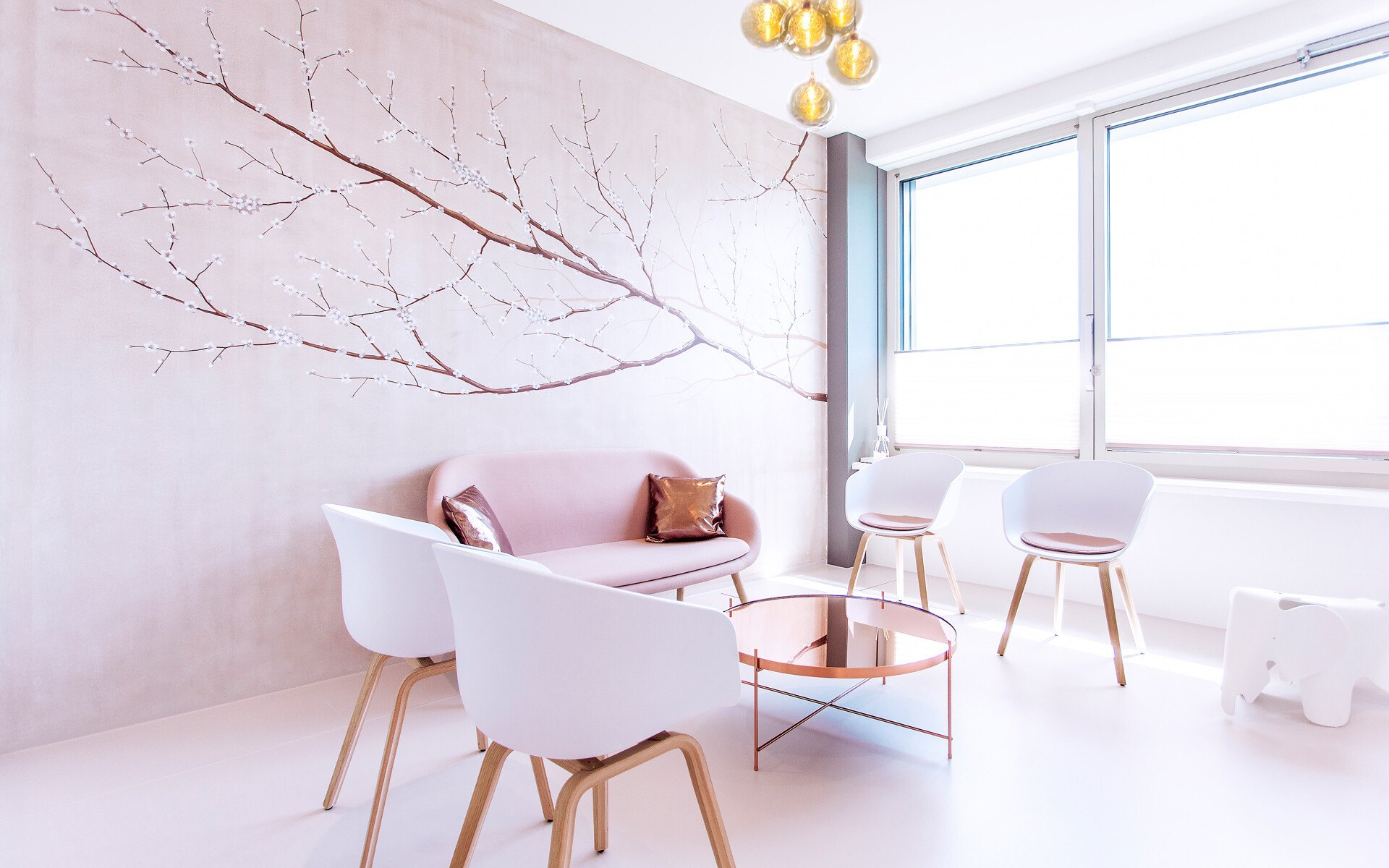 Da in einer gynakologischen Praxis besonders der erste visuelle Eindruck zählt, wir der Praxis auf in großflächigen Bildern besonders viel Raum gelassen.