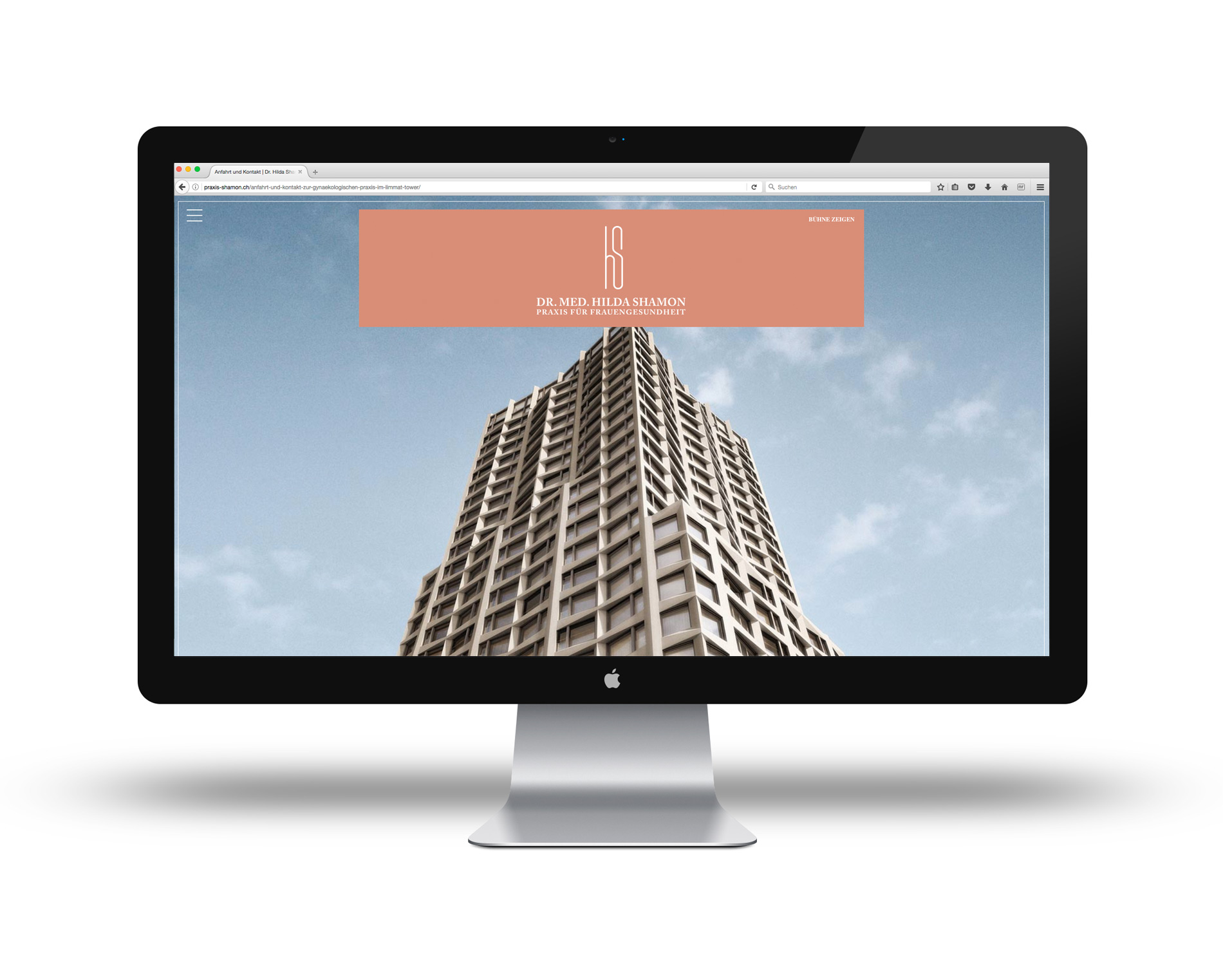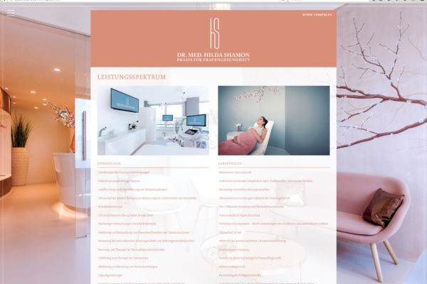 Die Visualisierung des Logos nimmt die Kubatur des Gebäudes auf und verschmilzt mit den Initialen von Dr. Hilda Shamon. Der Schwerpunkt der gynäkologischen Praxis von Dr. Hilda Shamon liegt im Wohlfühlen.